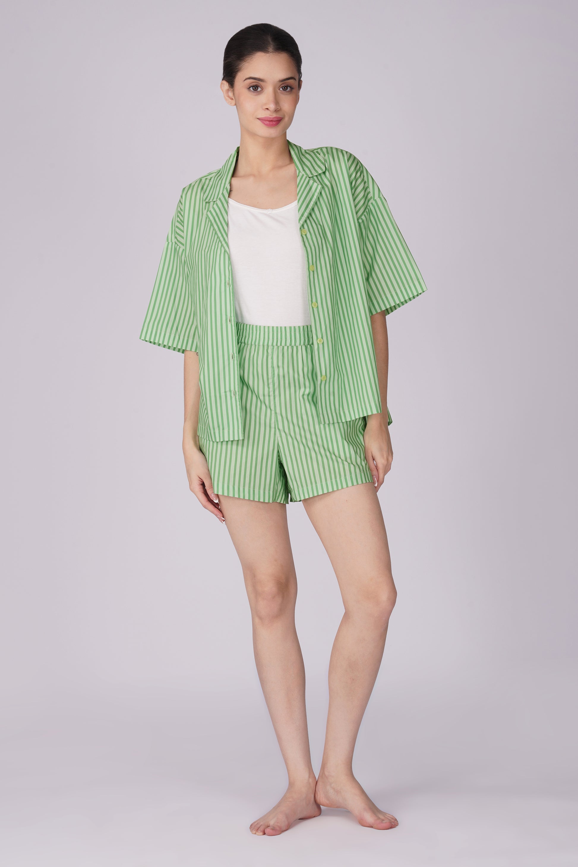 Keep it light, bright, and stylish with the Green Breeze Stripe Shorts Set — where laid-back comfort meets easy fashion.