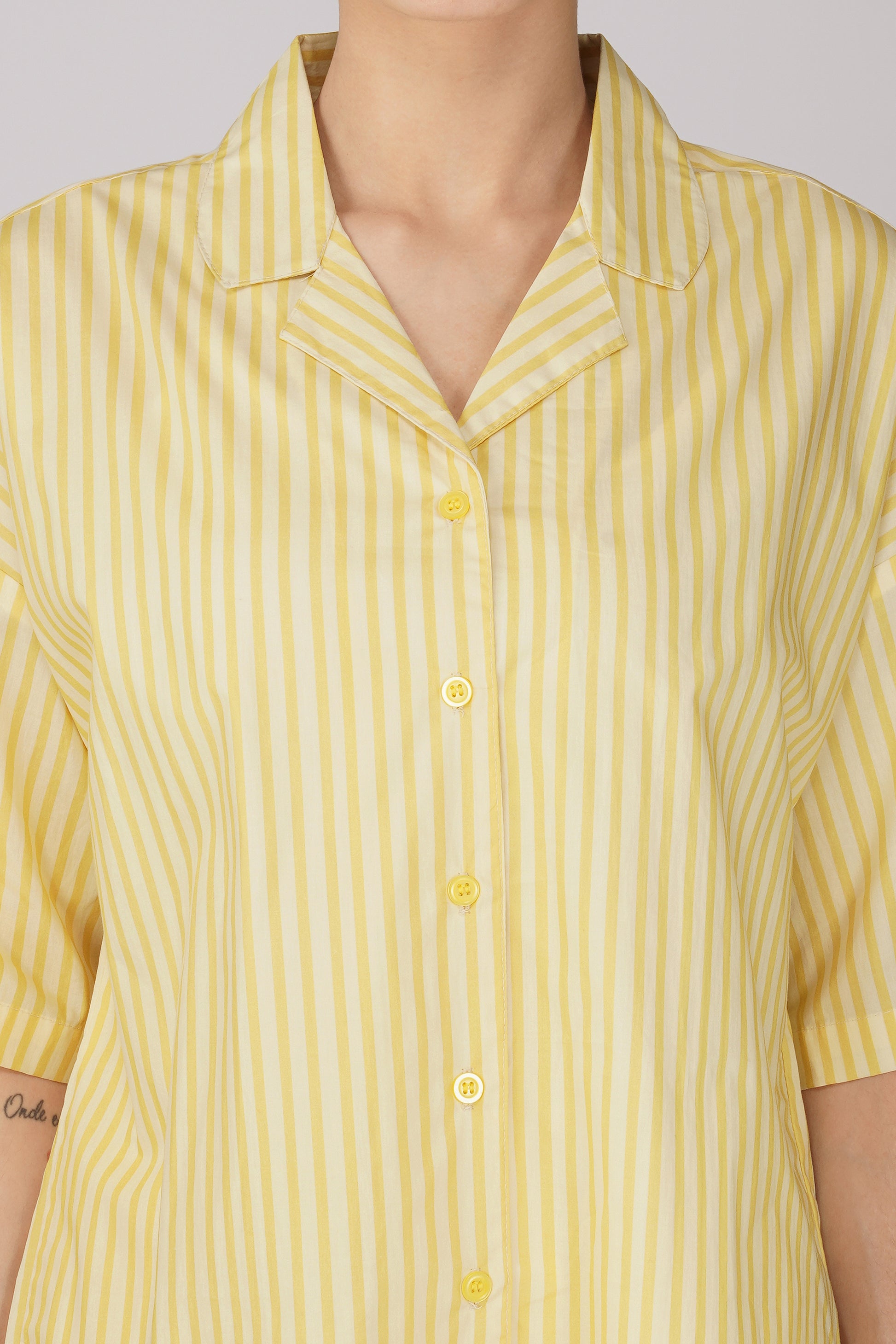 Add a cool, vibrant touch to your daily wardrobe with this Yellow Breeze Stripe Shorts Set — comfort and style made playful.